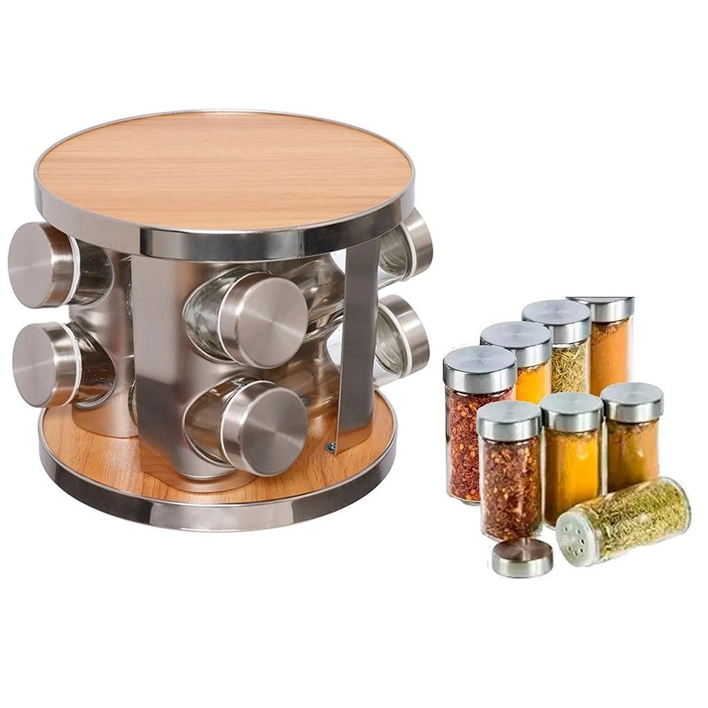🌿 Dale un toque gourmet a tu cocina con el Especiero Giratorio de Vidrio y Acero Inoxidable 🌿