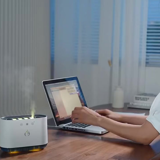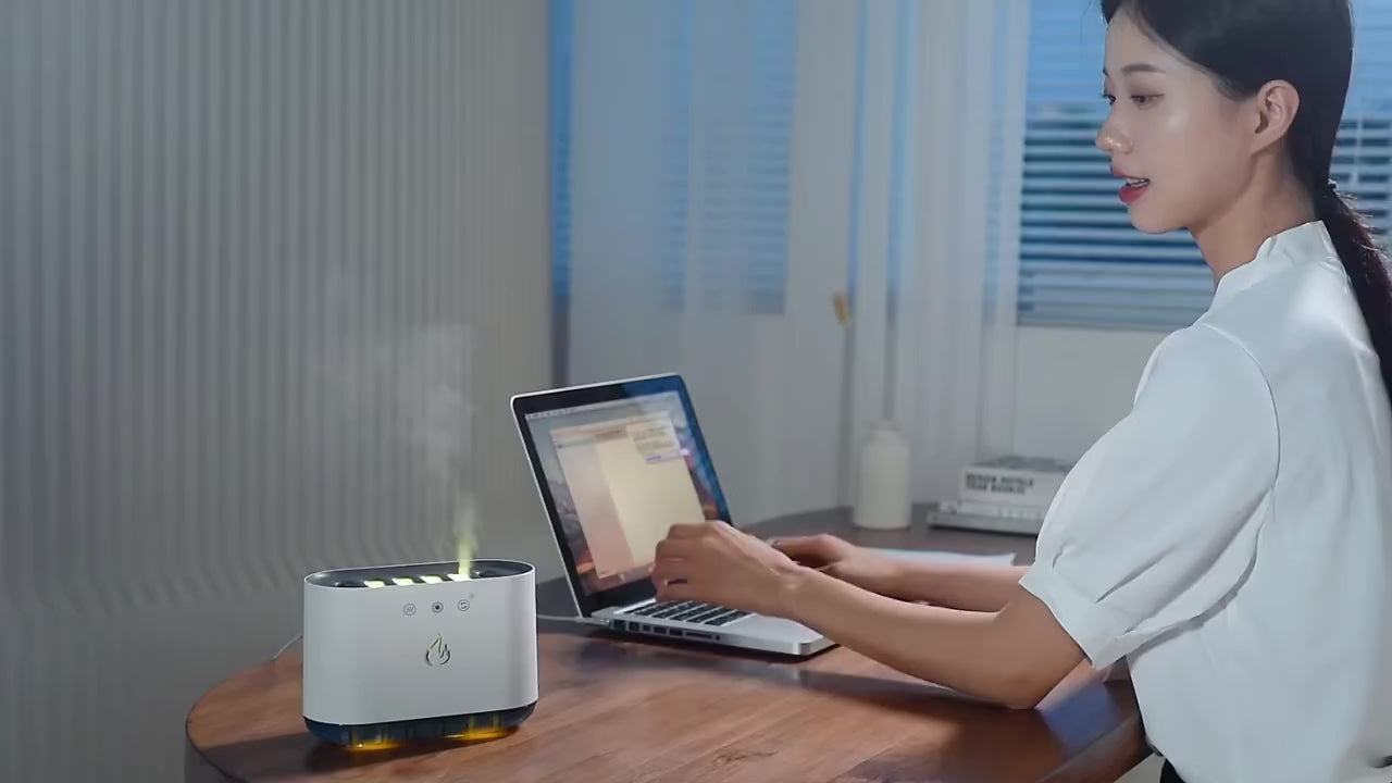 A diferencia de los humidificadores tradicionales, este modelo cuenta con una tecnología de niebla combinada con iluminación LED, que imita la apariencia de una llama suave y realista. El resultado es un ambiente cálido, perfecto para relajarte después de un día cansado, ver una película o meditar.